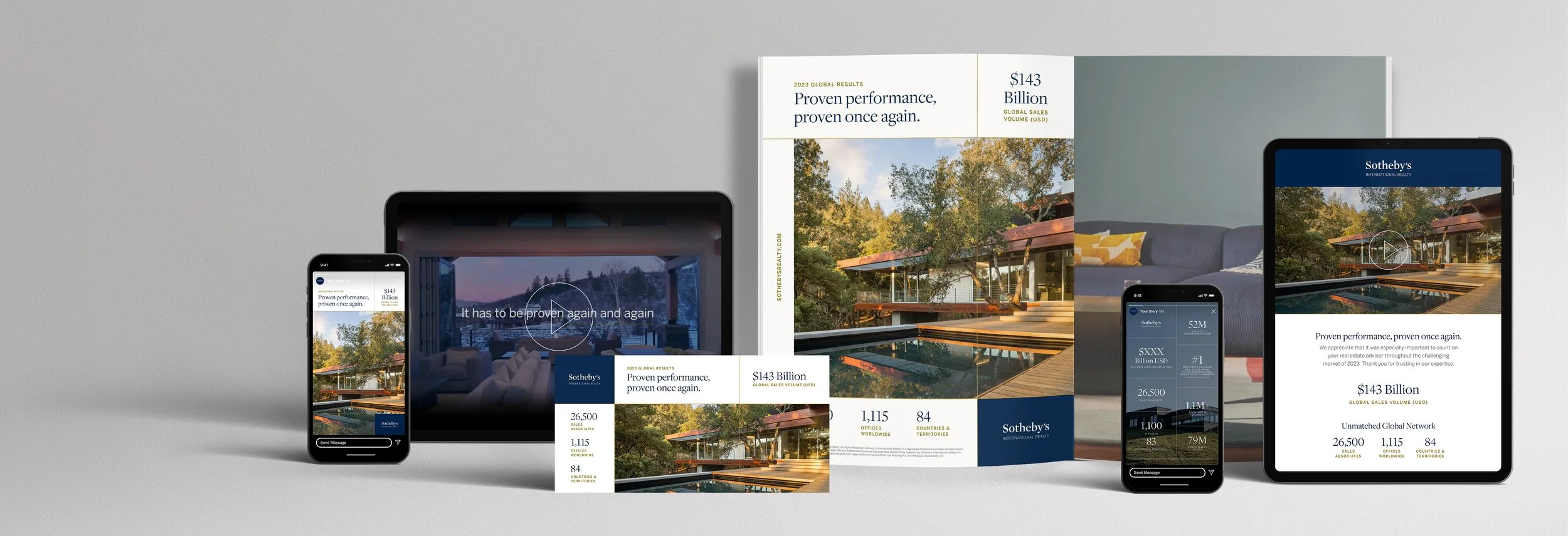 Every year the Sotheby’s International Realty® brand releases a campaign containing the global sales volume among other significant stats from the year prior. For 2023, the look and feel was based on the marketing campaign: Nothing compares to what’s next. Everything from email, to socials, to presentation materials were created to cover the needs of the entire affiliate network.